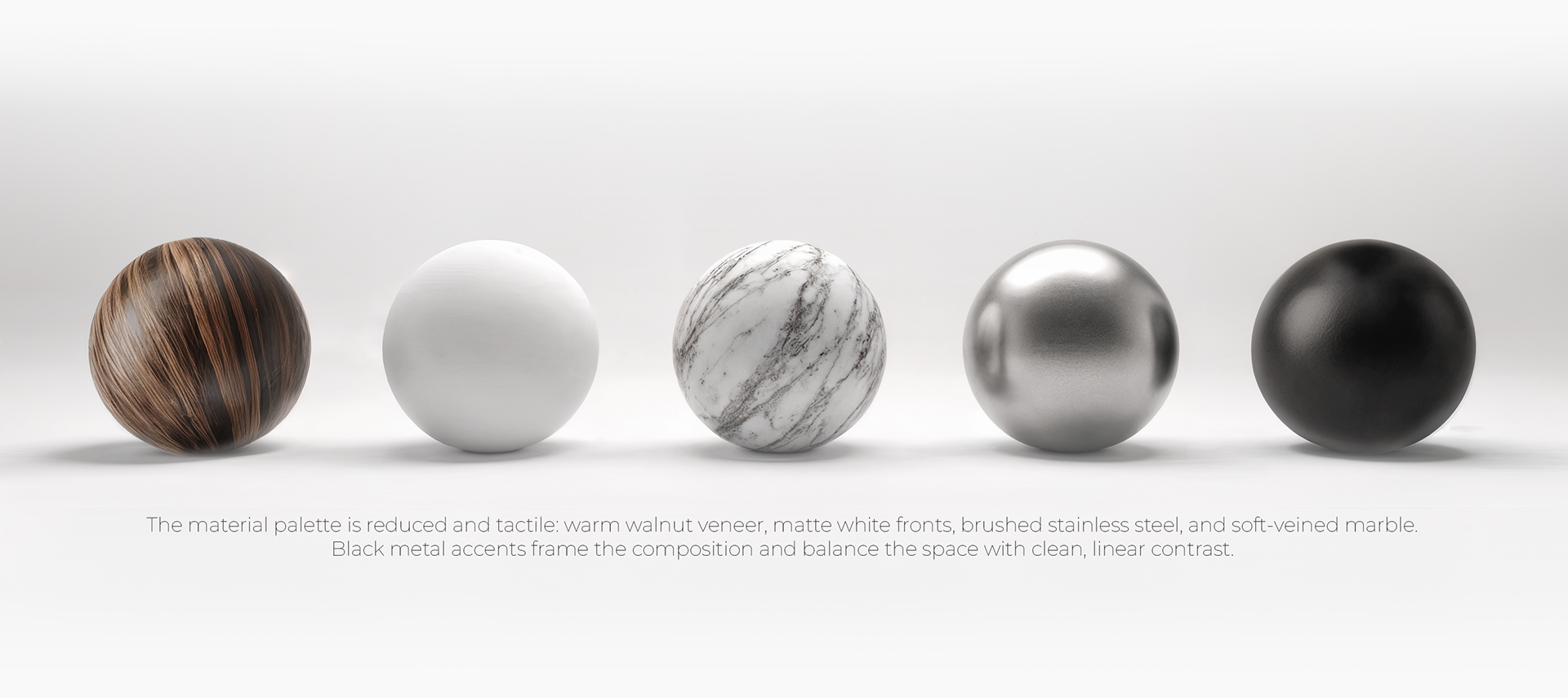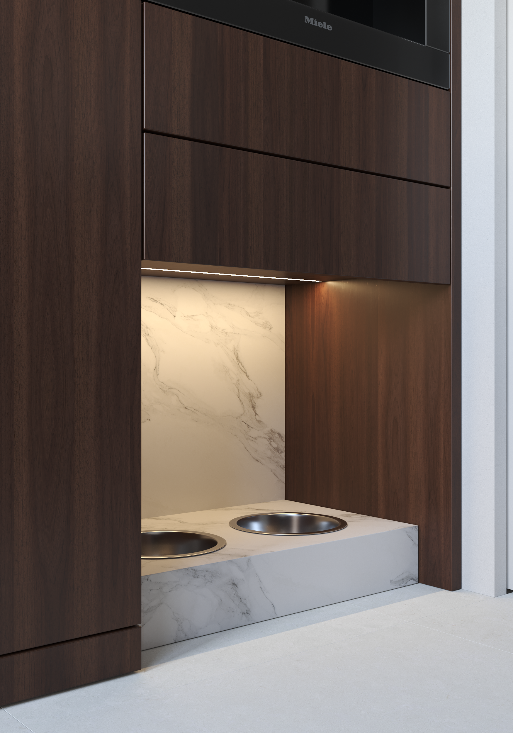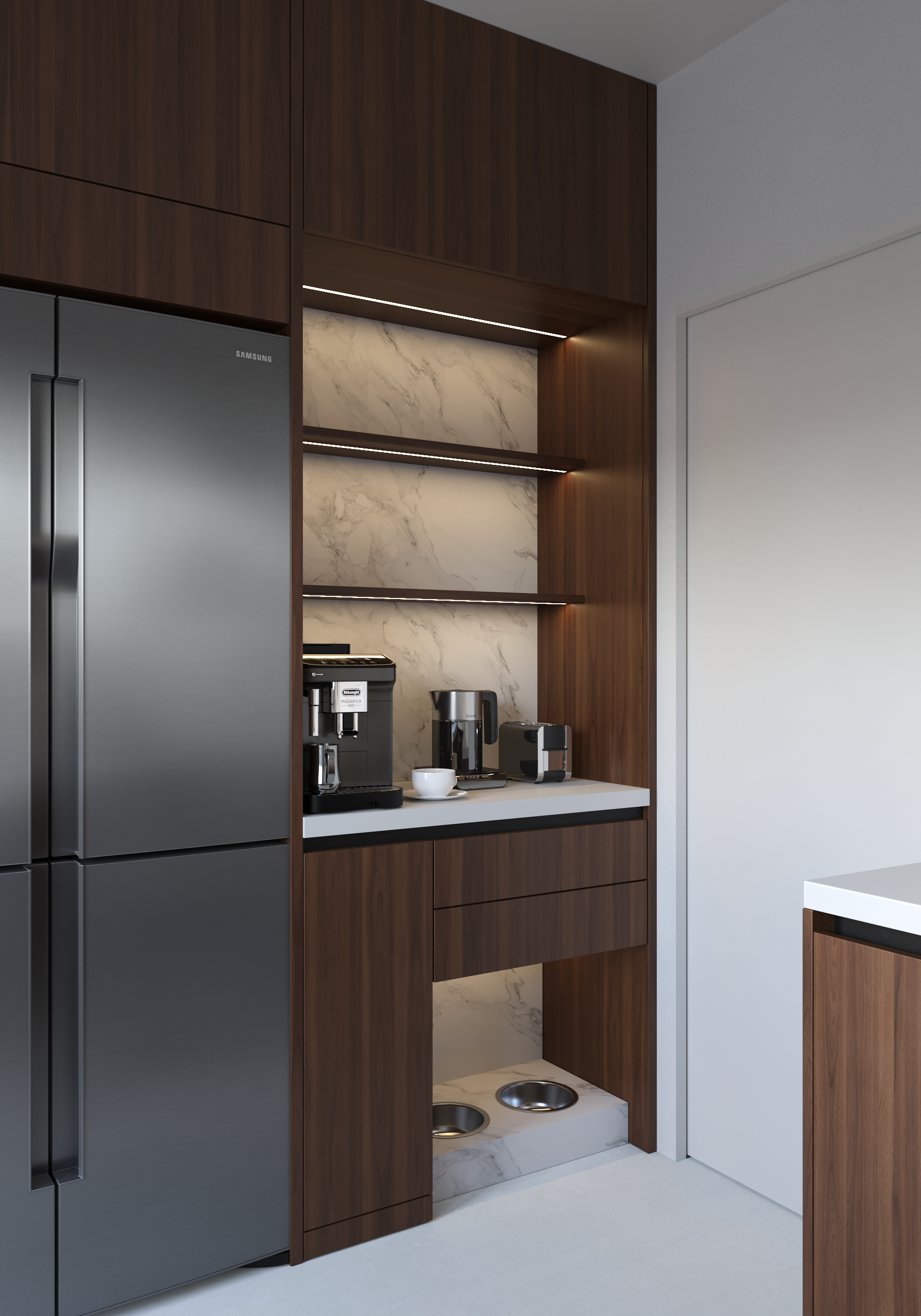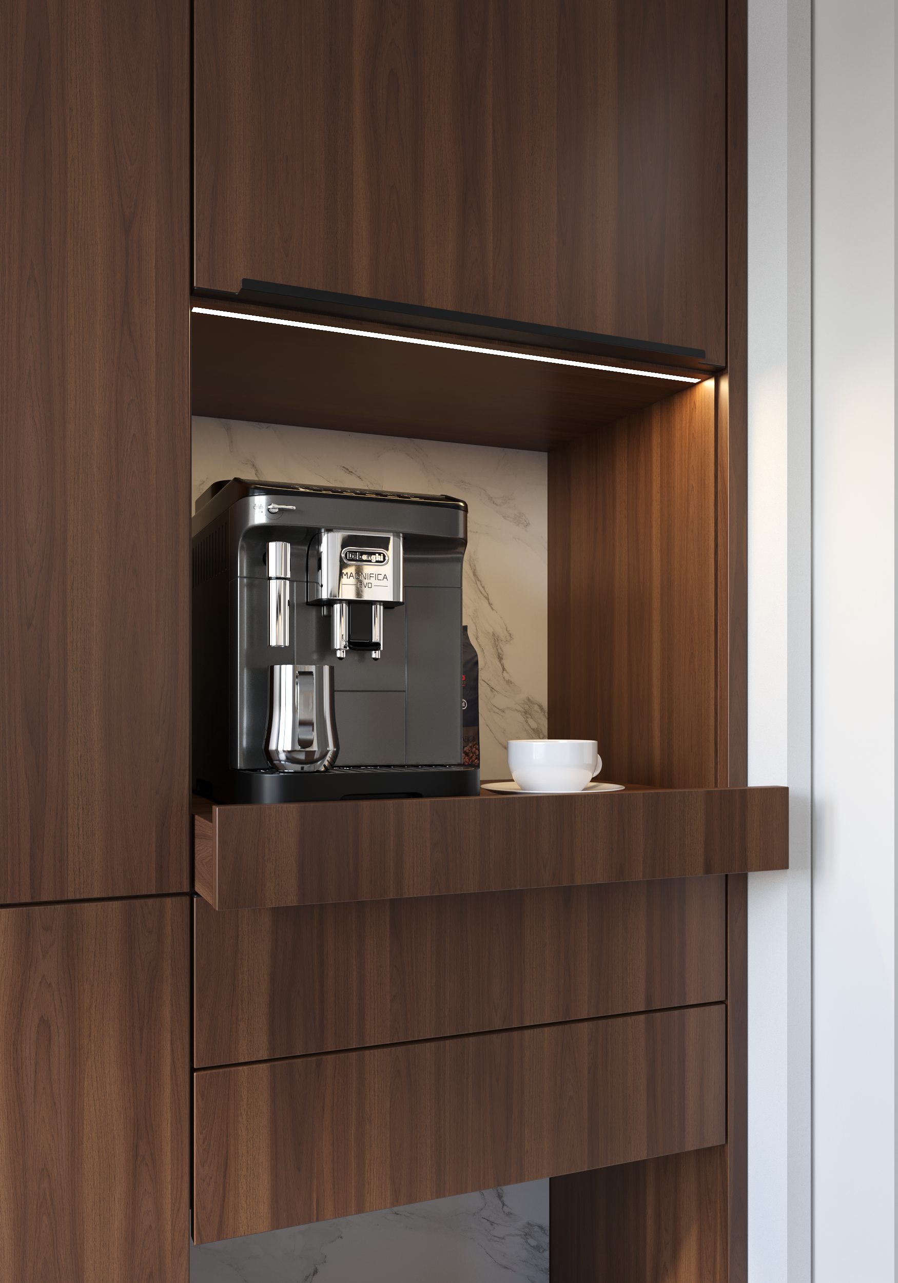 Both closed options were dropped in favor of an open coffee niche, which works better and feels lighter.