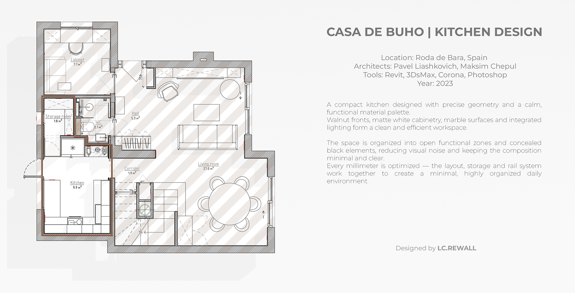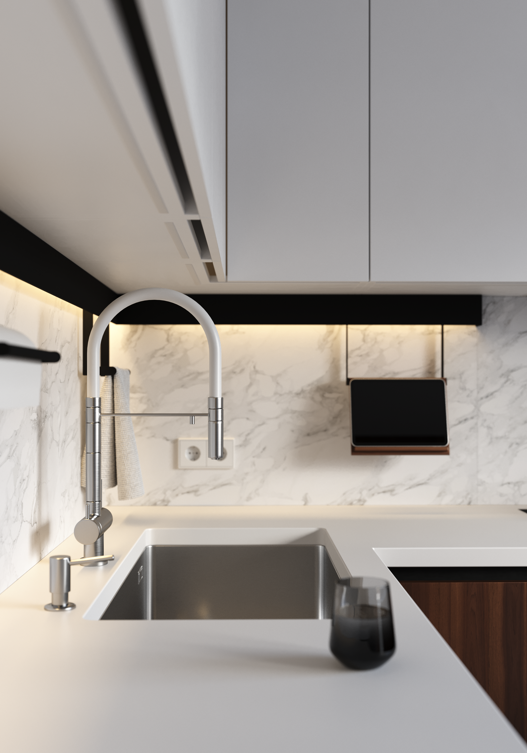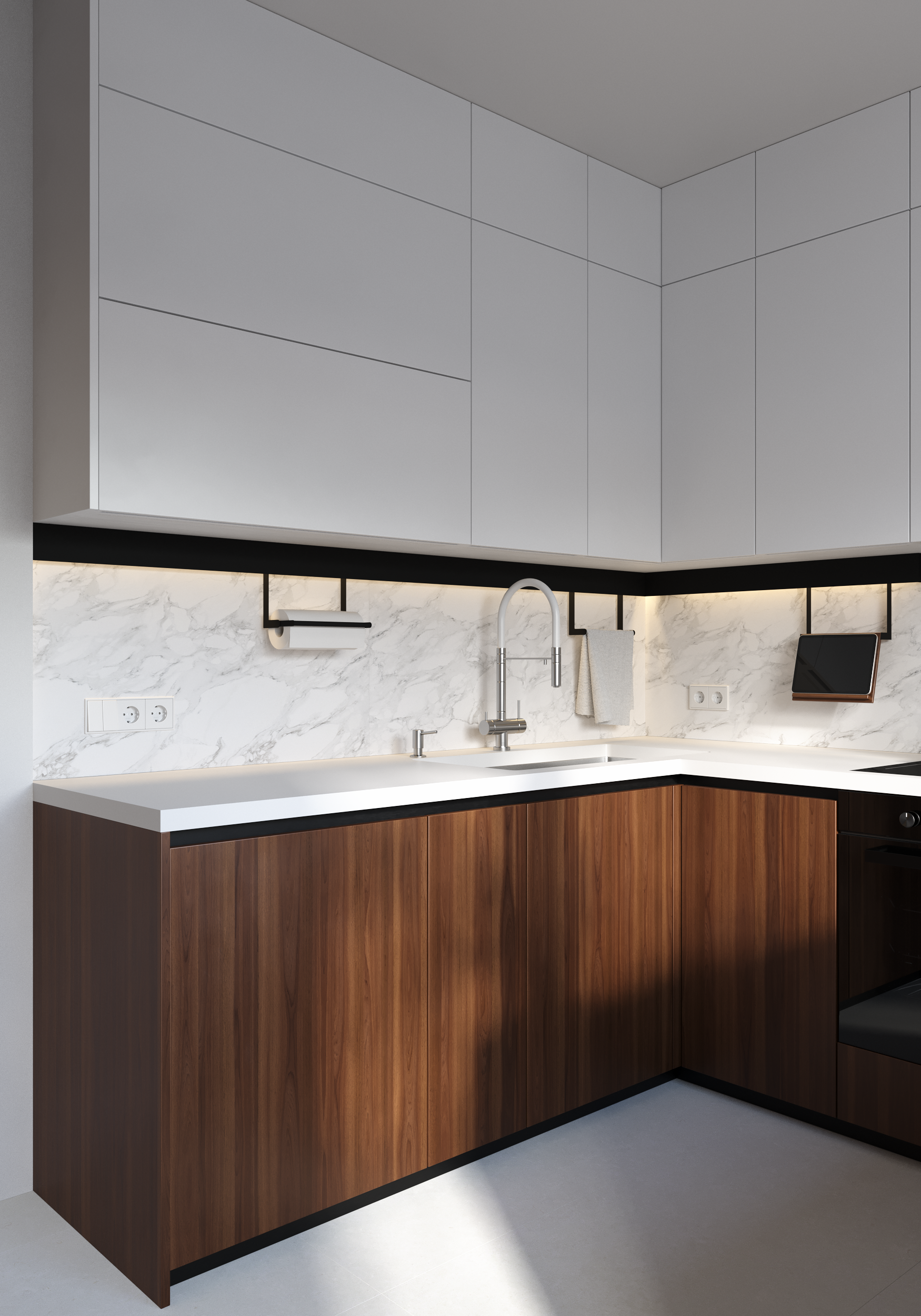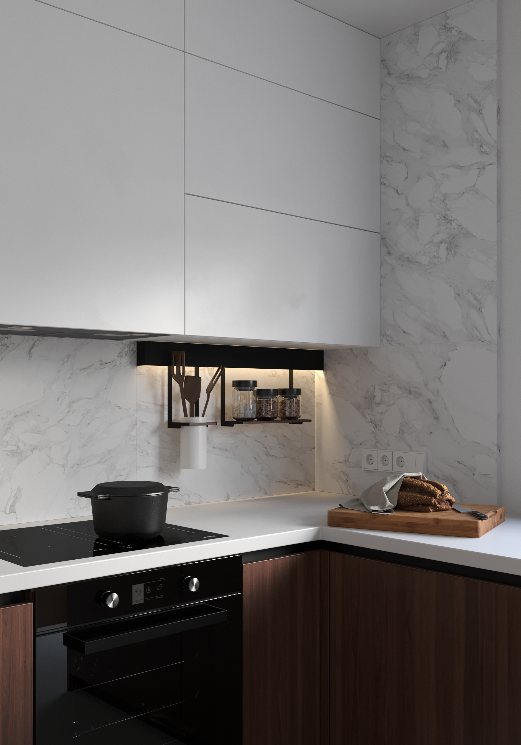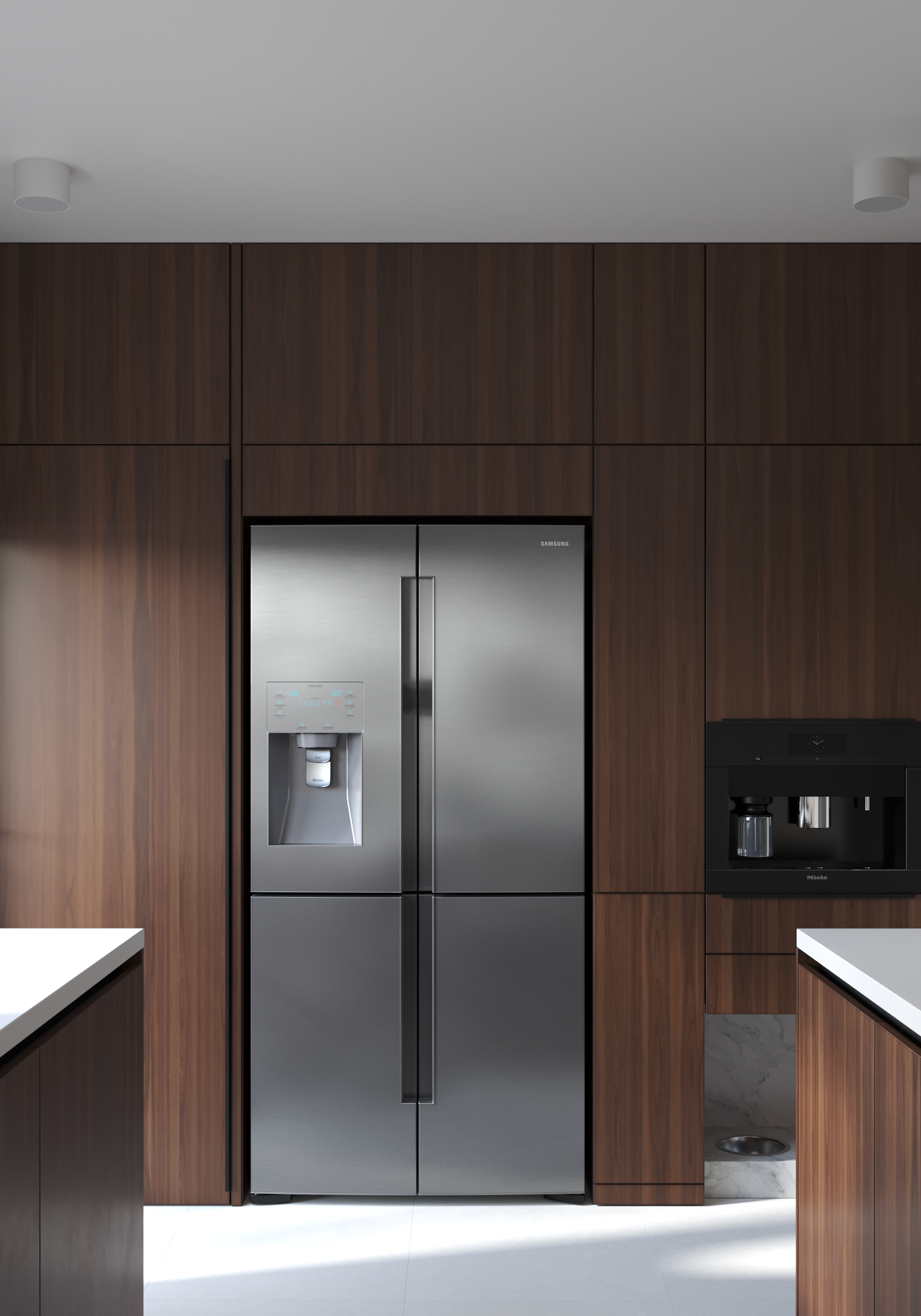 Both closed options were dropped in favor of an open coffee niche, which works better and feels lighter.